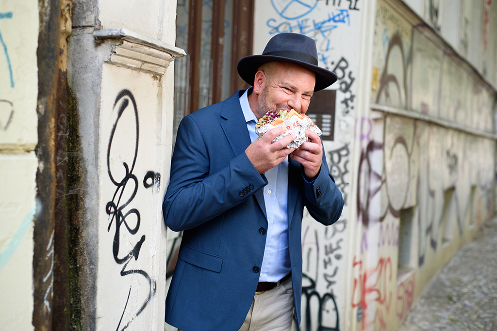 Ein großer Vorteil bei den Outdoor Shootings ist auch, dass z.B. so ein Requisiten-Döner dann draussen bei den Businessaufnahmen gegessen wird und nicht bei uns im Fotostudio drinnen.